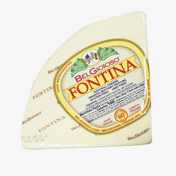 El Fontina de BelGioioso es un queso semi-suave elaborado con leche entera de vaca y envejecido por lo menos 60 días. Se distingue por su perfil de sabor delicado con ligeras notas a nuez y una pasta de color marfil que se vuelve excepcionalmente cremosa al calentarse.