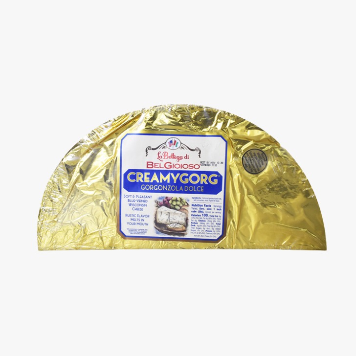 El CreamyGorg de La Bottega di BelGioioso es un queso de pasta blanda con vetas azules, madurado durante 90 días para alcanzar su punto óptimo de cremosidad. A diferencia de otros quesos azules más fuertes, su perfil es suave y ligeramente dulce (estilo Dolce).